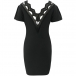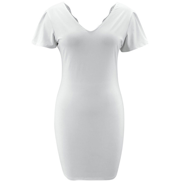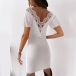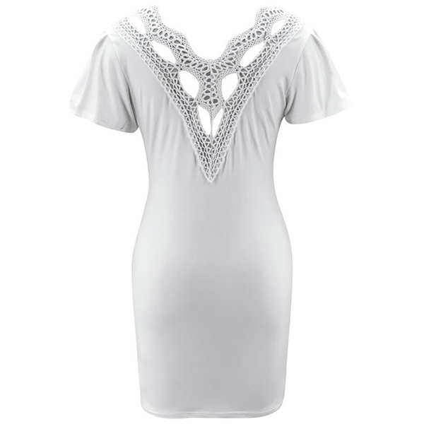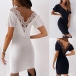 Sexy Lace Spliced Backless V-neck Short Sleeve Solid Color Dress