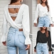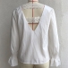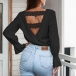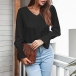Sexy Lace Spliced Backless V-neck trumpet Sleeve Solid Color Top
