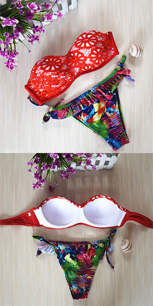 with chic and colorful floral print pattern. Take this bikini set to the seaside,you would have a happy time.