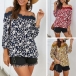 Sexy Lace Spliced Boat Neck 3/4 Sleeve Printed Sling Top