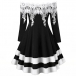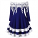 Sexy Lace Spliced Boat Neck Long Sleeve Contrast Color Dress