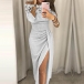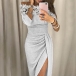 When you have no idea about what to wear for your dinner dates,then you can make your eyes focused on this dress. The lace spliced boat neck and slit hem design make this piece look so sexy and alluring,while the high waist design can showcase your slender figure. Dress it up with your sexy heels for a beautiful look!