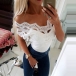 Sexy Lace Spliced Boat Neck Solid Color Slim Fit Top