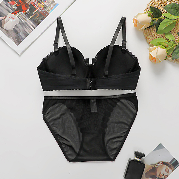 Sexy Lace Spliced Bowknot Two-piece Lingerie Set
