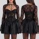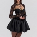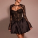 This mini dress features a corset-style bodice that cinches in the waist and enhances your curves, creating a flattering and hourglass shape. The sweetheart neckline adds a touch of romance and allure to the dress, framing the décolletage beautifully for a sexy and sophisticated look. It comes with a lace cardigan, this ensemble adds a layer of elegance and sophistication to the outfit.