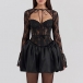 Sexy Lace Spliced Corset Style Sweetheart Neckline Mini Dress with Lace Cardigan