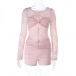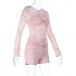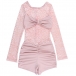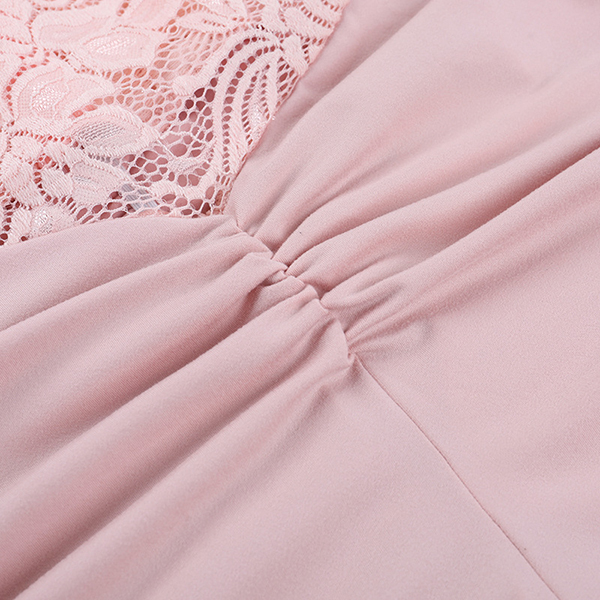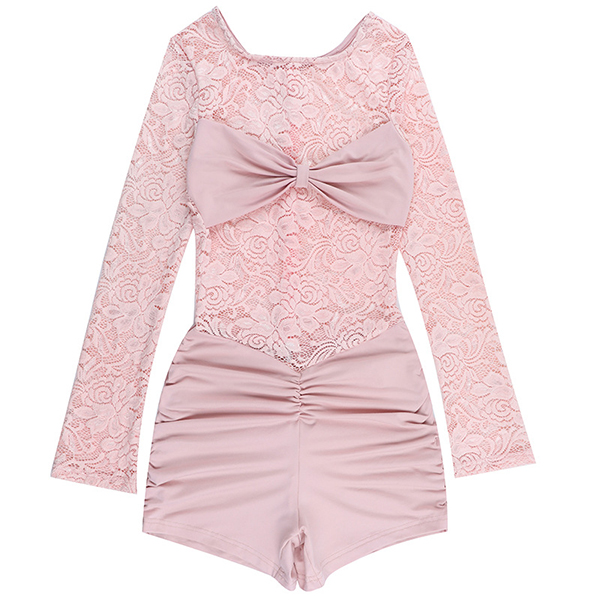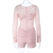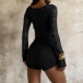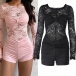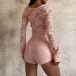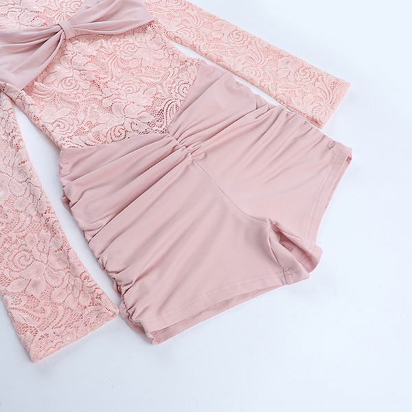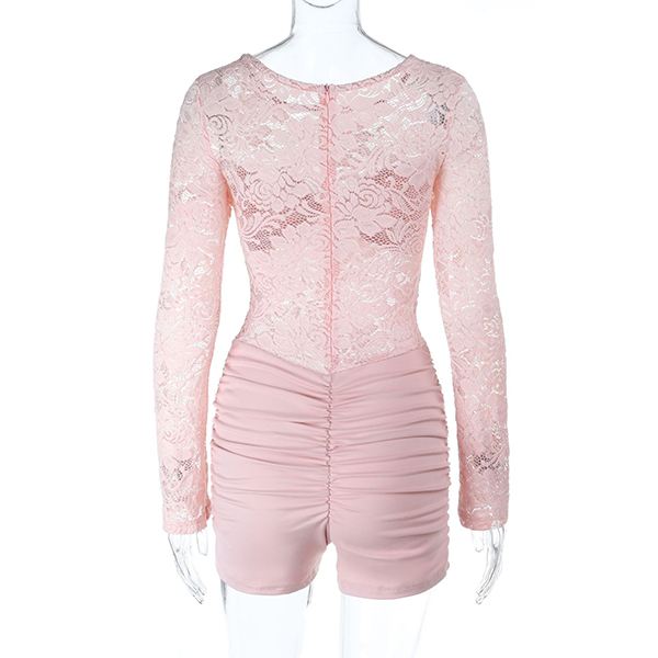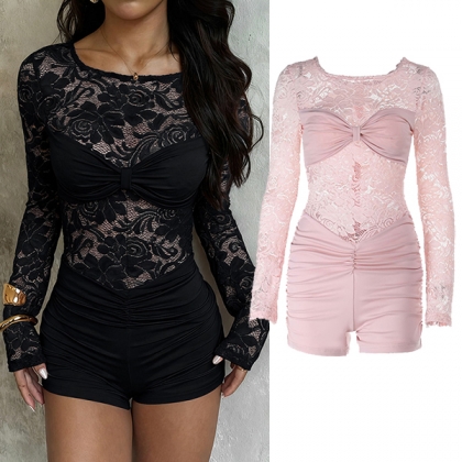 Sexy Lace Spliced Crew Neck Long Sleeve Ruched Romper