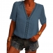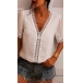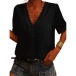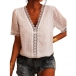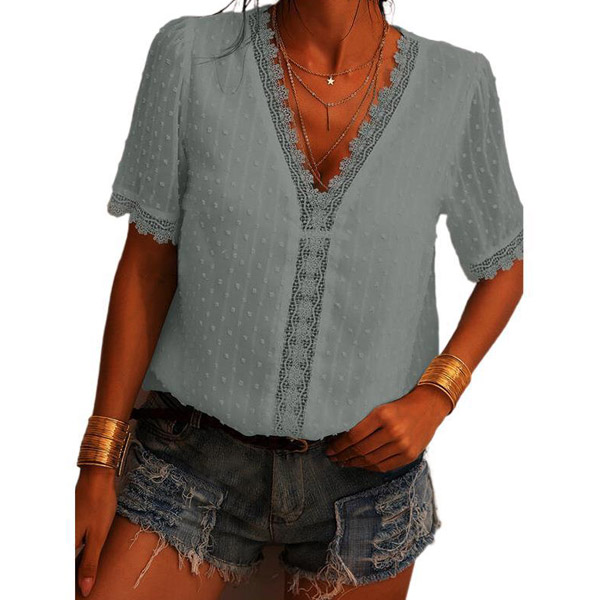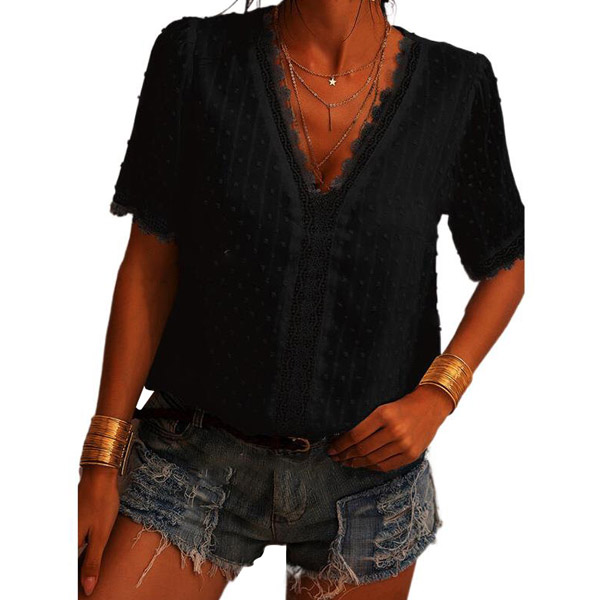Sexy Lace Spliced Deep V-neck Short Sleeve Solid Color Top