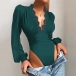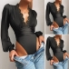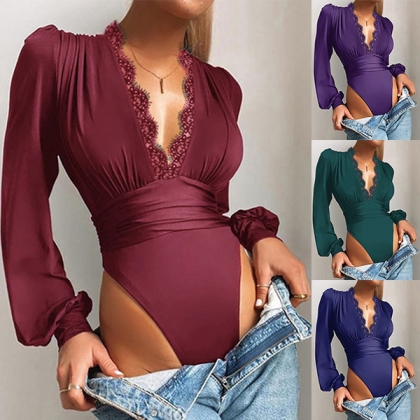 Sexy Lace Spliced Deep V-neck Solid Color Bodysuit