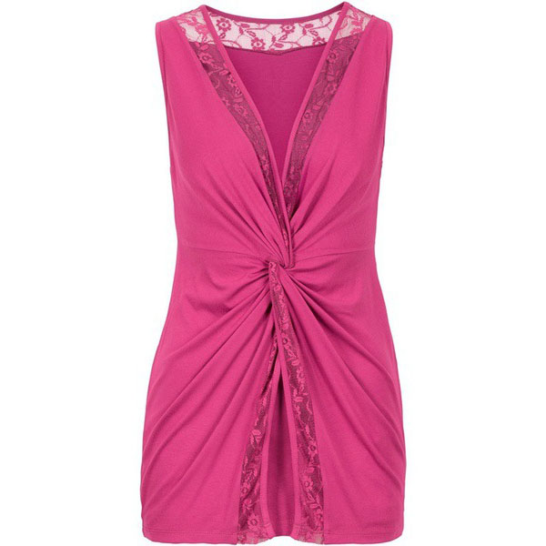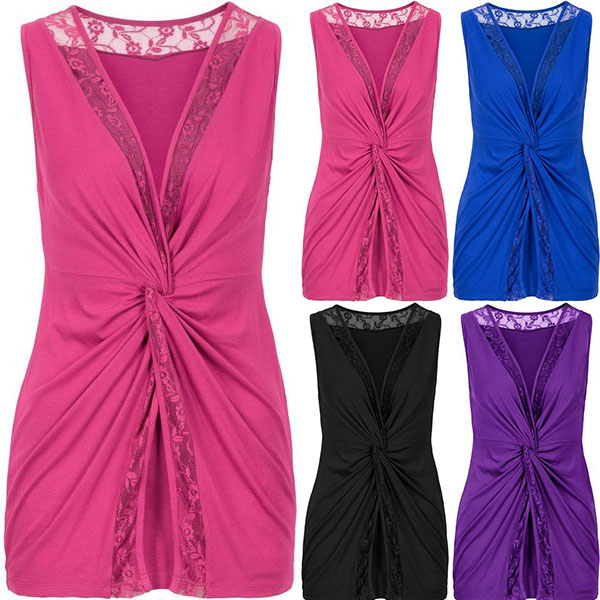 Sexy Lace Spliced Deep V-neck Twisted Sleeveless Top