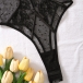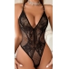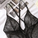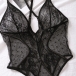 Sexy Lace Spliced Dot Printed Gauze V-neck Backless Lingerie Bodysuit