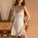 Sexy Lace Spliced Draped Neckline Backless Slip Pajamas Dress