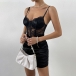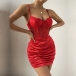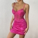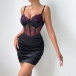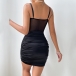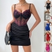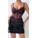 Sexy Lace Spliced Floral Embroidery V-neck Sleeveless Ruched Bodycon Dress