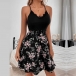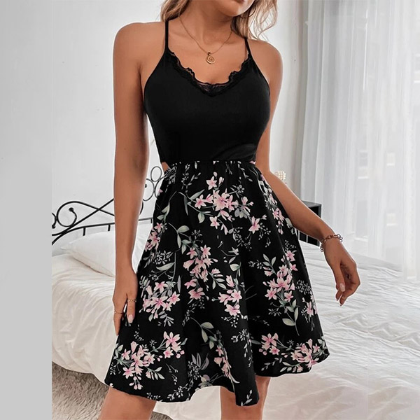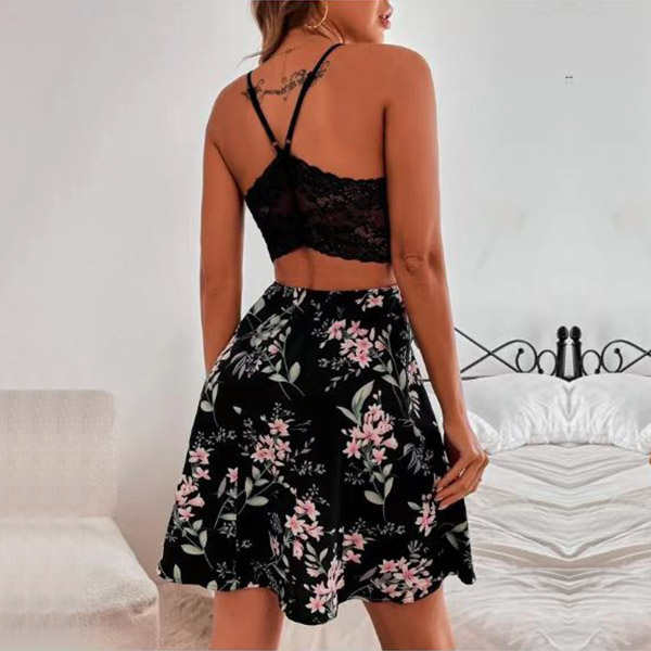 Sexy Lace Spliced Floral Printed Backless Slip Dress