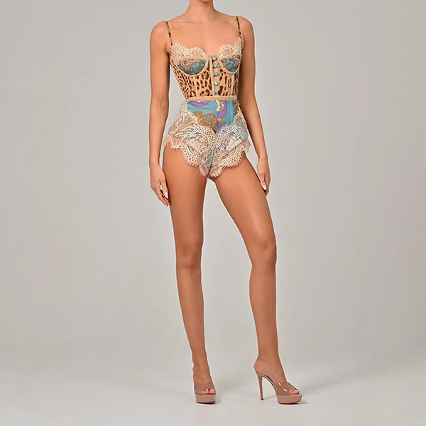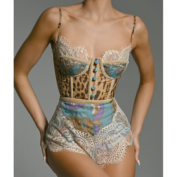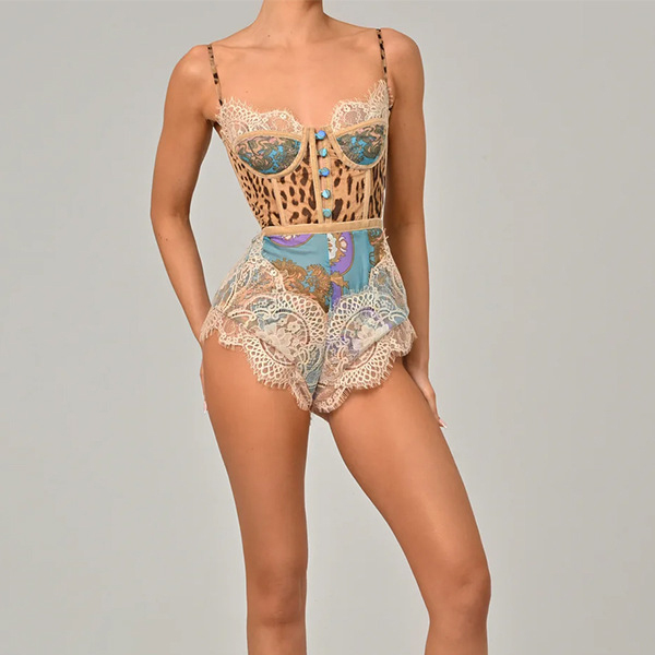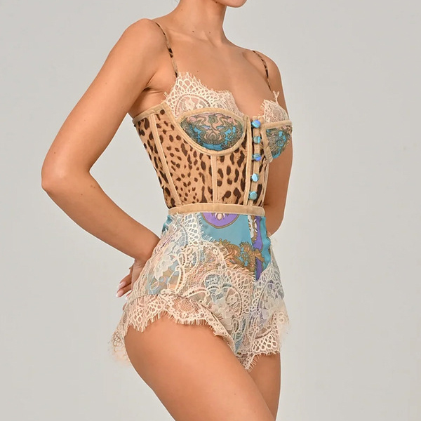 Sexy Lace Spliced Floral Printed Sweetheart Neckline Romper
