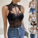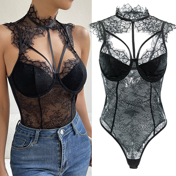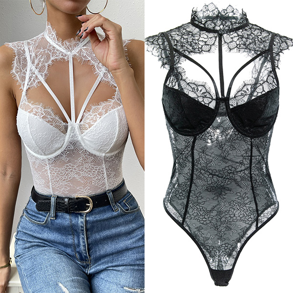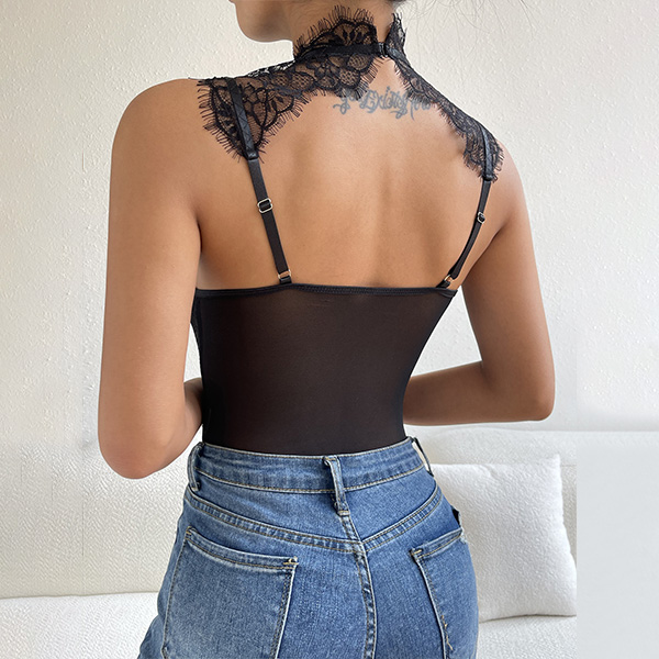 This bodysuit combines lace splicing, a front cutout design, and a sleeveless silhouette for a sexy and stylish look. The versatility of this bodysuit allows you to pair it with different bottoms, such as skirts, jeans, or trousers, for a variety of stylish outfits.