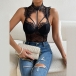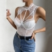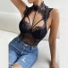 Sexy Lace Spliced Front Cutout Sleeveless Bodysuit