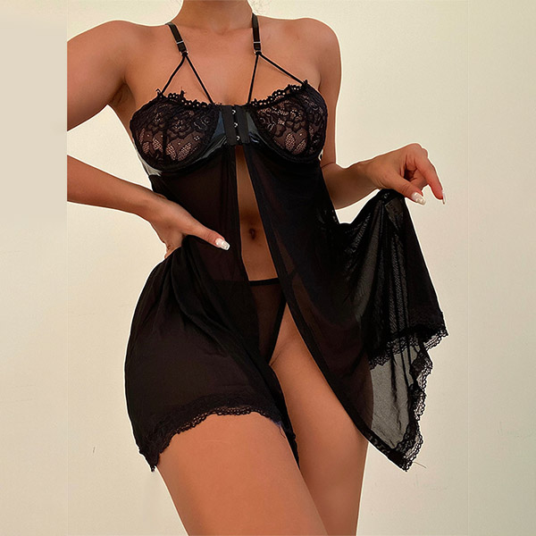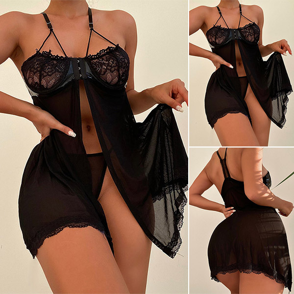 Sexy Lace Spliced Front Slit Lingerie Dress Nightwear Dress