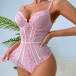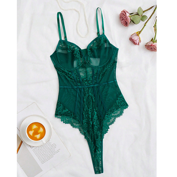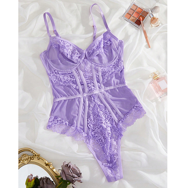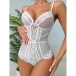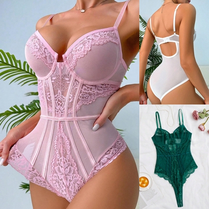 Sexy Lace Spliced Gauge Semi-through Push-up Lingerie Bodysuit