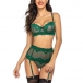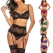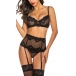 Sexy Lace Spliced Gauze Semi-through Three-piece Lingerie Set