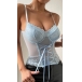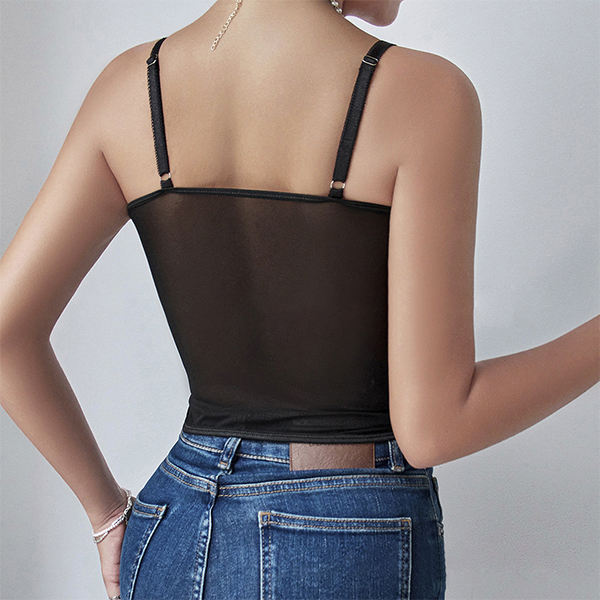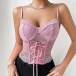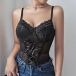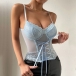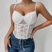 Sexy Lace Spliced Gauze Sweetheart Neckline Lace-up Cami Corset Shirt