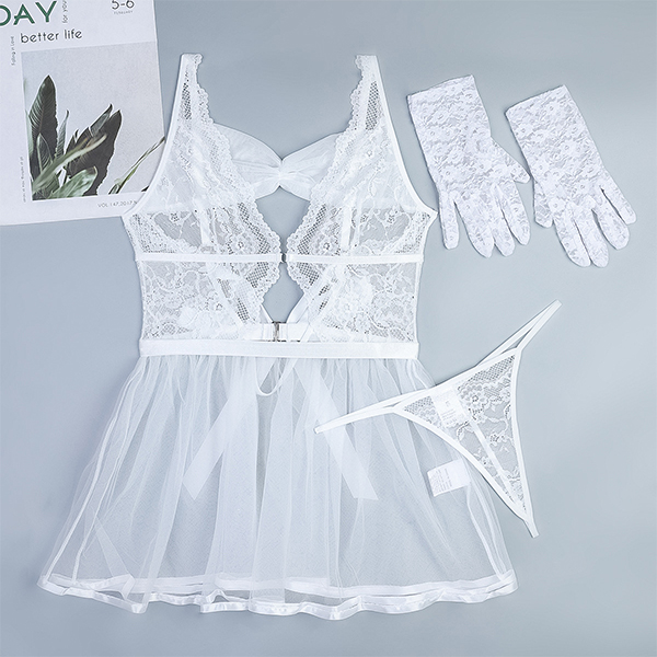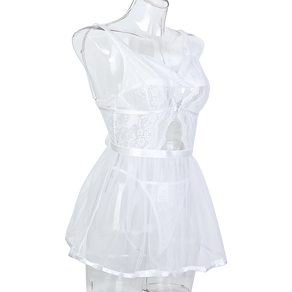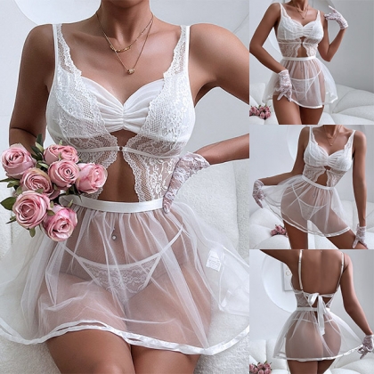 Sexy Lace Spliced Gauze Three-piece Lingerie Set