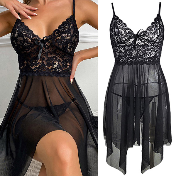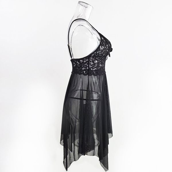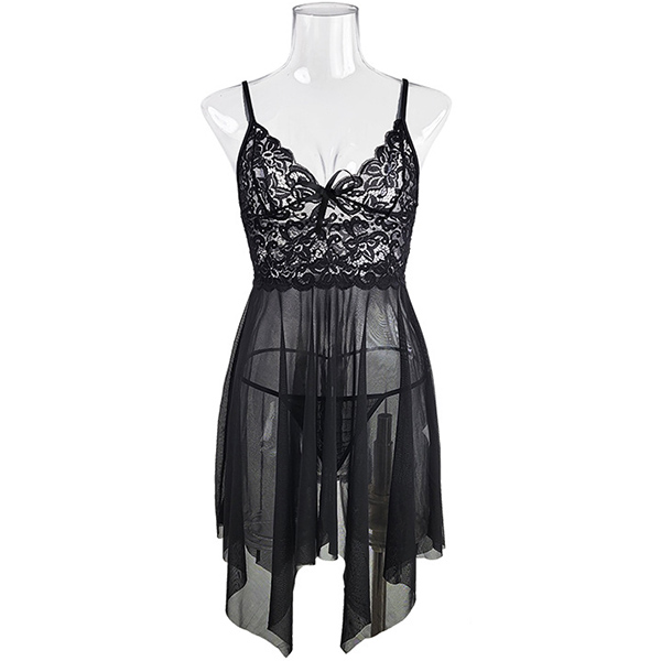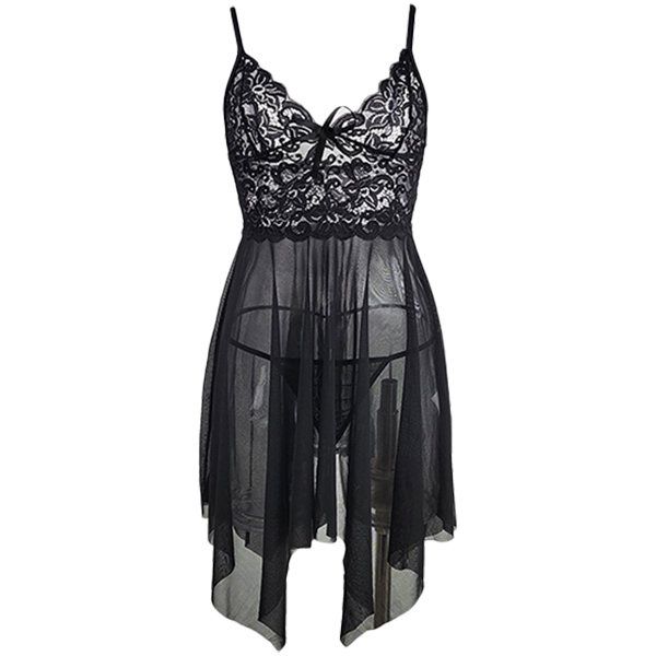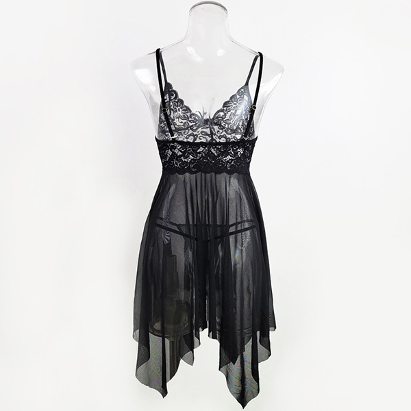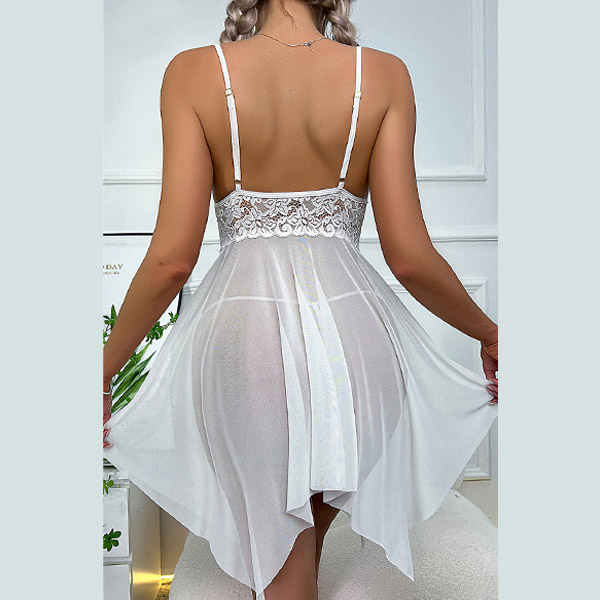 Sexy Lace Spliced Gauze V-neck Slip Nightwear Dress
