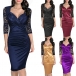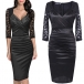 Sexy Lace Spliced Half Sleeve V-neck Slim Fit Dress
