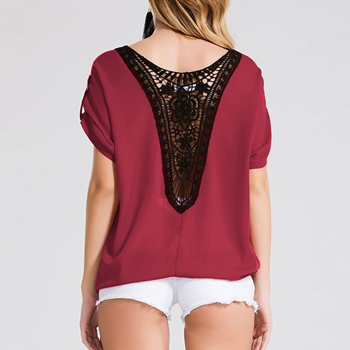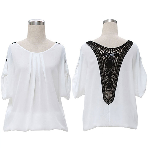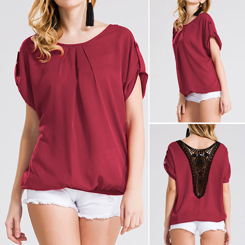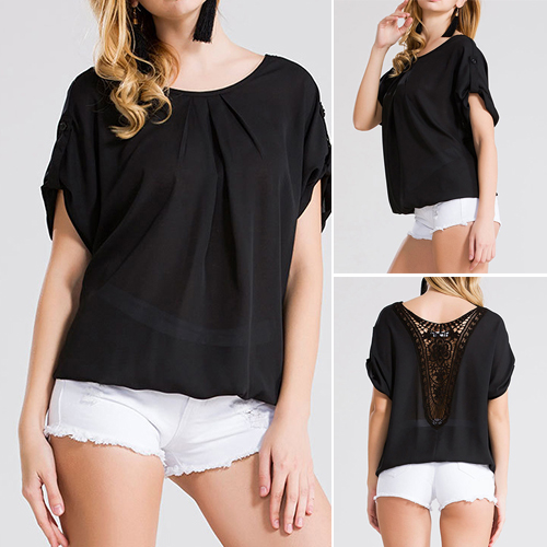 Hollow out style, with lace spliced, round neck and short sleeve design, this chiffon tops makes