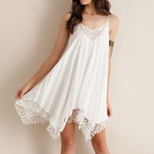 Enter and exit a room in a sultry style with this cami dress. Lace spliced style,with adjustable cami strap