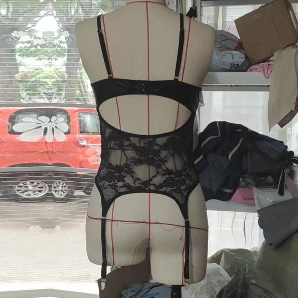 Sexy Lace Spliced Lace-up Artificial Leather PU Lingerie Bodysuit