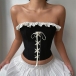 Sexy Lace Spliced Lace-up Strapless Bandeau Crop Top