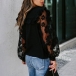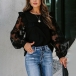 Sexy Lace Spliced Lantern Sleeve Round Neck Ruffle T-shirt