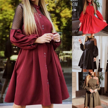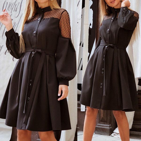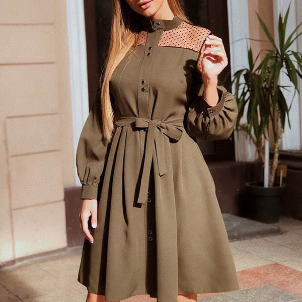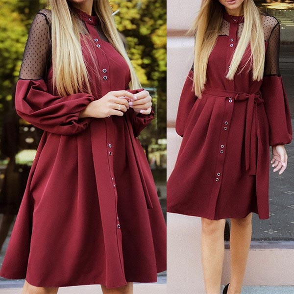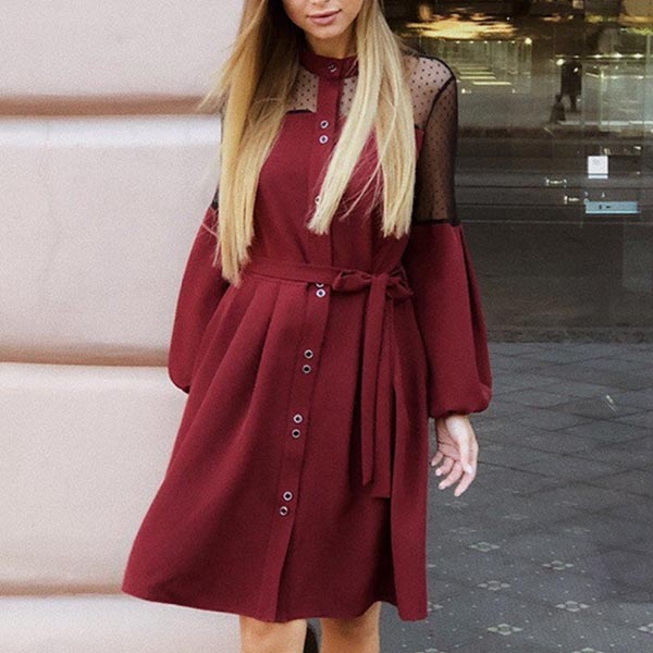 Take an interest with this shirt dress to give your style have an instant boost. The lace spliced and lantern sleeve design can easily exude your stylish and feminine side. No matter for your dating or weekend gatherings with your friends,you can trust in this dress to make you look beautiful!
