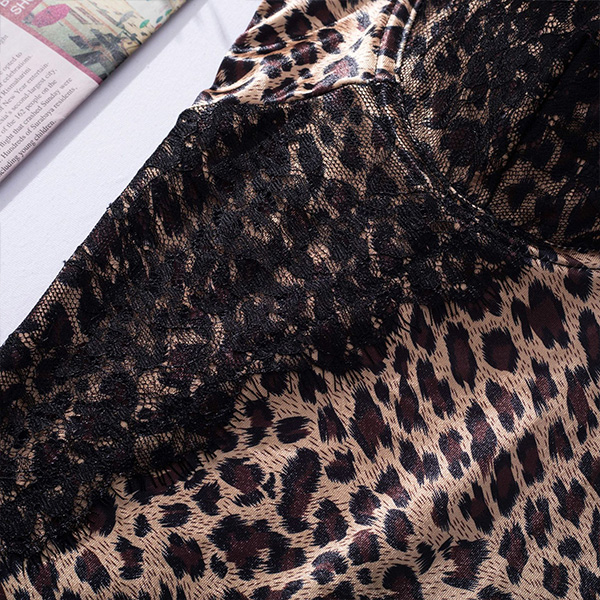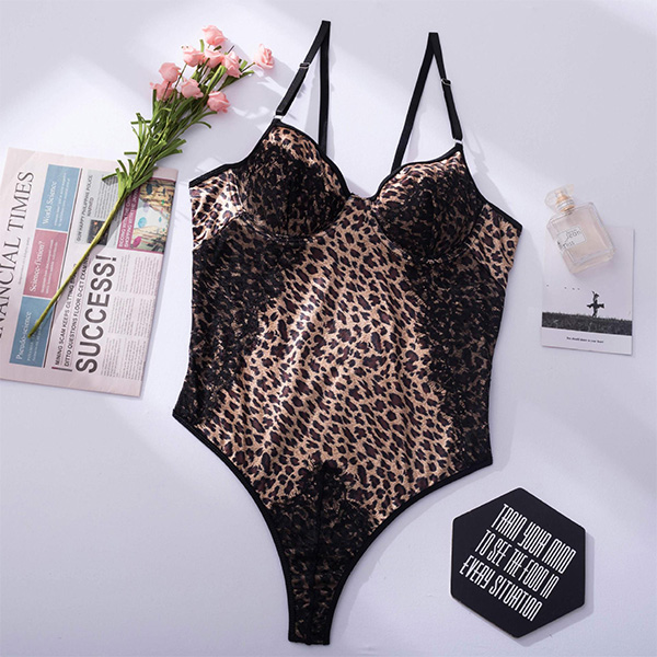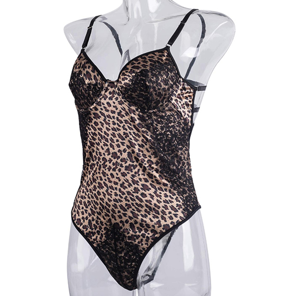 Sexy Lace Spliced Leopard Print Criss-cross Backless Lingerie Bodysuit