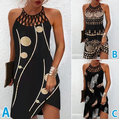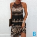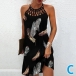 Sexy Lace Spliced Leopard Printed Contrast Color Halter Dress