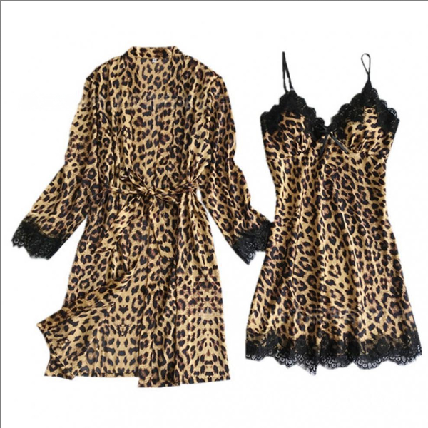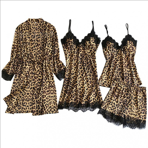 Even during your night time and sleeping time,you can exude your sexy and flirty side with the help of this nightwear set. It consists of 4 pieces such as sling top,shorts,sling dress and night-robe. Its soft and breathable fabric can ensure you an utmost comfort,while the lace spliced and leopard printed details will make them look more eye-catching and alluring.