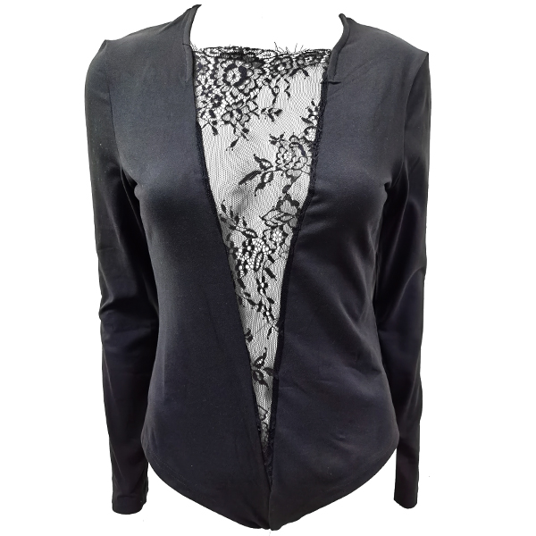This Sexy Bodysuit is the perfect piece of lingerie to spice up any evening. Crafted from a luxurious blend of lace and stretchable fabric, this bodysuit is designed to hug your curves in all the right places. The beautiful floral lace splicing adds a touch of femininity, while the long sleeves and high neckline create a sexy and sophisticated look.