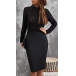 Sexy Lace Spliced Long Sleeve Mock Neck High Waist Slim Fit Dress