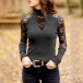 This t-shirt that exudes stylish and flirty vibes is worth to arouse your attention. Solid color style,the lace spliced details can easily enhance its entire charm,while the mock neck and soft fabric can keep you warm and comfy all the day. Try to match with a jeans to start your wonderful day!