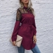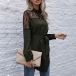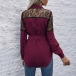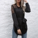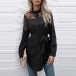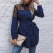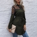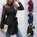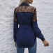Sexy Lace Spliced Long Sleeve Round Neck Arc Hem Shirt