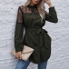 A perfect combination of stylish and flirty vibes,this shirt is worth to arouse your attention. The lace spliced details and arc hem design will enrich the design style. Comes with a waist strap,which can help showcase your slender waist. We suggest you matching with a tight pants to start your wonderful day!