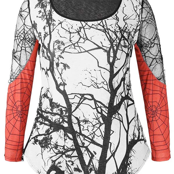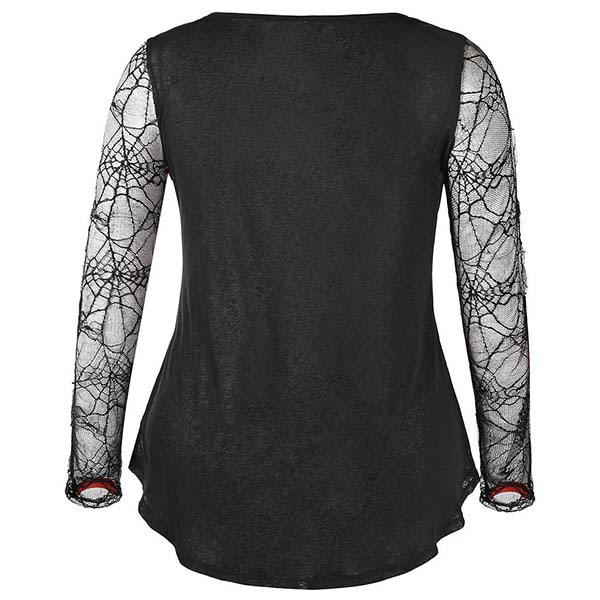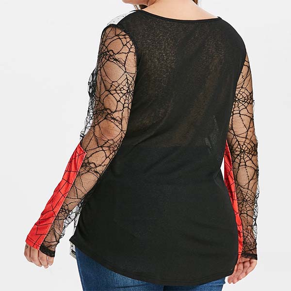 Sexy Lace Spliced Long Sleeve Round Neck Plus-size Printed T-shirt