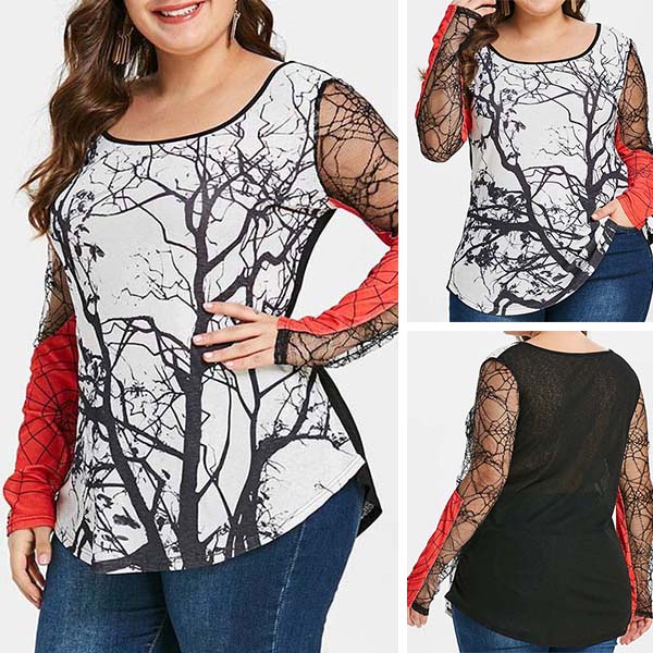 Crafted from soft and breathable fabric,with long sleeve and round neck design,this plus-size t-shirt can give you a comfortable day,while the lace spliced and chic printed details will make this piece look more attractive and stylish. You can trust in this t-shirt to give you a stylish yet sexy style.