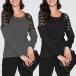 Sexy Lace Spliced Long Sleeve Round Neck Top