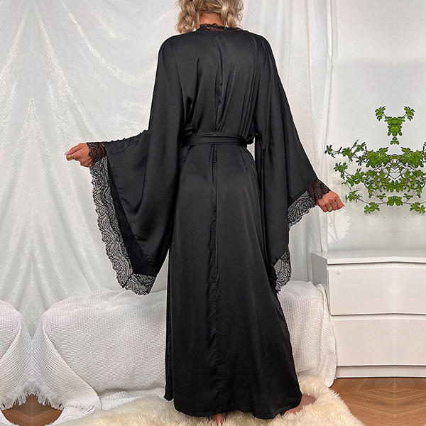Sexy Lace Spliced Long Sleeve Self-tie Loungewear Robe