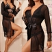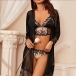 Sexy Lace Spliced Long Sleeve Self-tie Robe