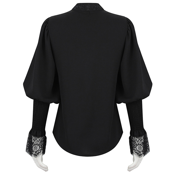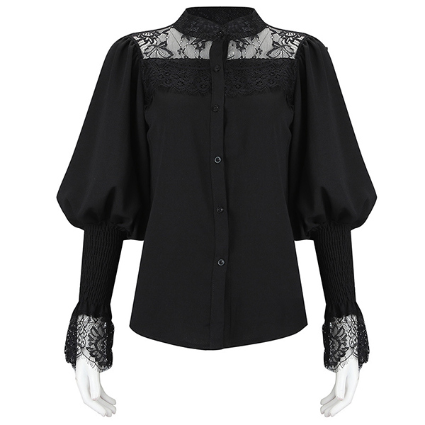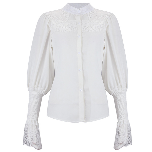 Sexy Lace Spliced Long Sleeve Stand Collar Shirt