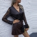 Sexy Lace Spliced Long Sleeve V-neck Bodysuit