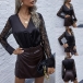 Wanna try a different style piece? Then you can make your eyes focused on this bodysuit. The flattering black tone and fit silhouette design can showcase your seductive curve,while the lace spliced long sleeve and v-neck design can enhance your feminine appeal. Try to match with a high waist pants to achieve for a charming look.